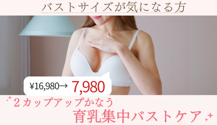 【人気NO1】初回限定メニュー バストサイズが小さい2カップアップ叶う育乳集中バストケア¥7980