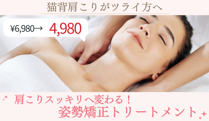 【猫背肩こりがツライ】初回限定メニュー 肩こりスッキリへ変わる姿勢矯正トリートメント/熊本